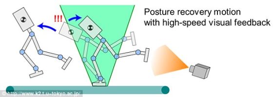 系统使用一台高速相机拍校正自身姿态,从而使机器人可以快速奔跑而不会摔倒。