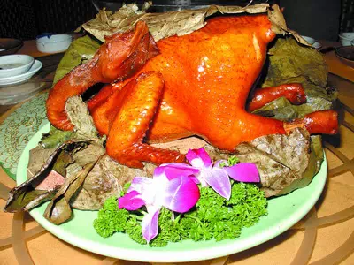 唐玄宗开元年间,有客商赶路,入夜饥饿,在湖南东安县城一家小饭店用餐。店主老妪因无菜可供,捉来童子鸡现杀现烹。童子鸡经过葱、姜、蒜、辣调味,香油爆吵,再烹以酒、醋、盐焖烧,红油油、亮闪闪,鲜香软嫩,客人赞不绝口,到处称赞此菜绝妙。知县听说后,亲自到该店品尝,果然名不虚传,遂称其为“东安子鸡”。这款菜流传至今上千年,成为湖南名菜。