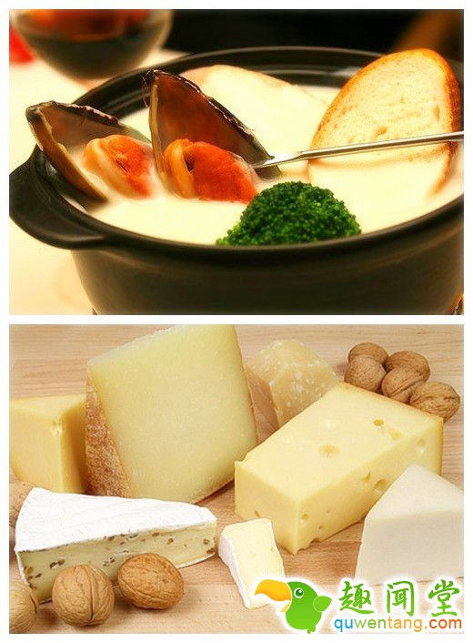 一锅沸腾的奶酪,再加上切成小块的面包和蔬菜,这就是瑞士火锅。这道没有有一个法文名字:fondue,意思是奶酪热蘸锅。