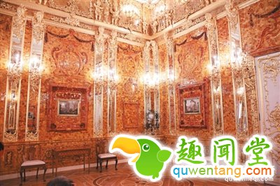 在这列“黄金列车”上,最引人注目的一件宝物要属“琥珀宫”。“琥珀宫”被誉为世界第八大奇迹,是1716年由普鲁士国王威廉一世送给俄罗斯彼得大帝的礼物。据称,“琥珀宫”面积约55平方米,共有12块护壁镶板和12个柱脚,由琥珀制成,同时还以钻石、宝石、黄金和银箔等多达10万片的珠宝用作装饰。据称,这列神秘的载满巨额财富的火车长495英尺(约150米),带有炮台和枪支,甚至还设有爆炸装置。