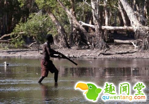 图:一名土著人正在寻找鳄鱼