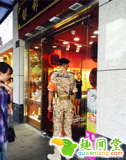 潘鸿江制服上的黄色袖章写着“English Service”(英语服务),这是只有英语能力360度无死角的警员才有的新装备。