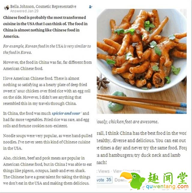 在Quora上就有老外提问“你怎么看中国的食物?What do you think of China's food?”这个提问有助于我们了解外国人对中国菜的看法。