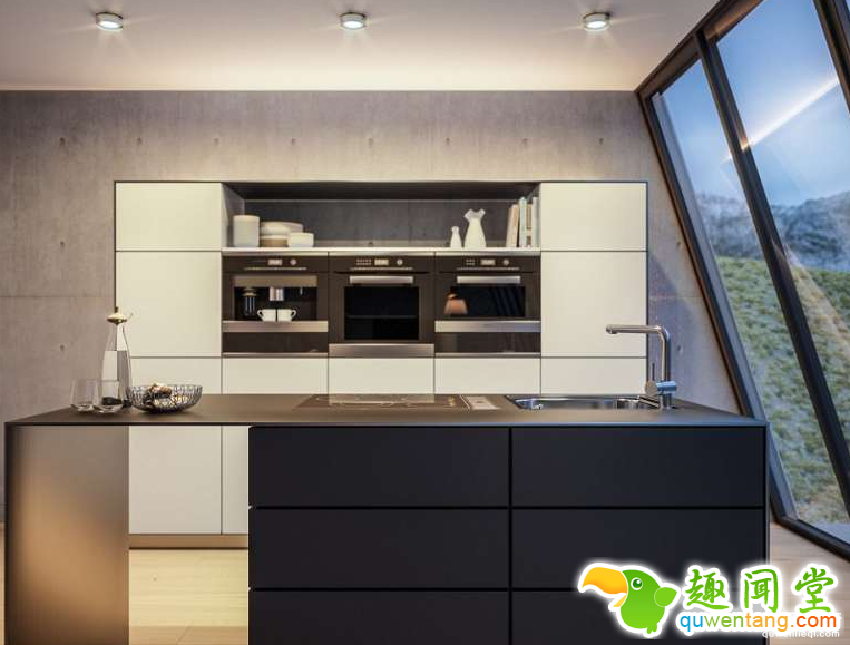 厨房是开放式的,功能齐全,有客人时能够展示自己的厨艺。