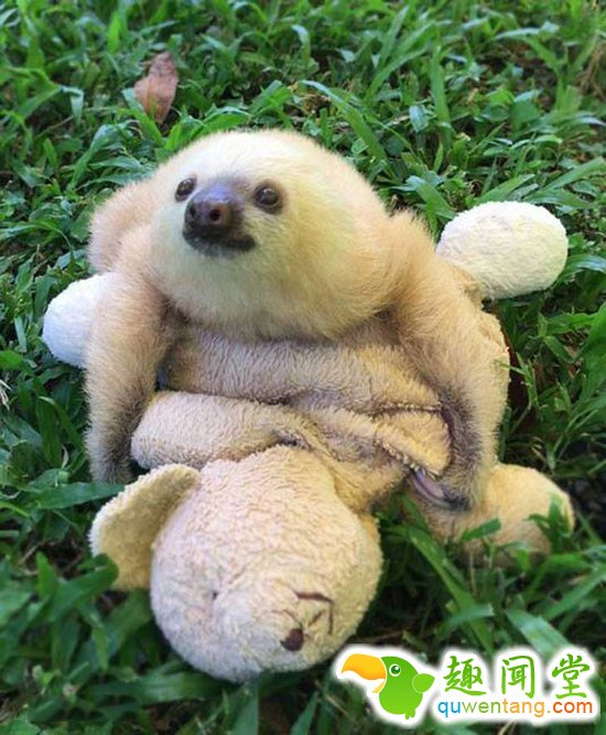 孤儿小树懒认玩具熊当“妈妈”,呆萌可怜变网红