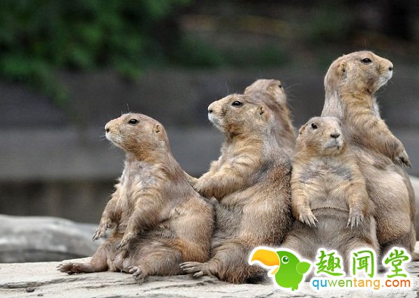 几只草原土拨鼠相互靠坐在一起享受日光浴,神似一家子电视迷挤在一块儿看电视。