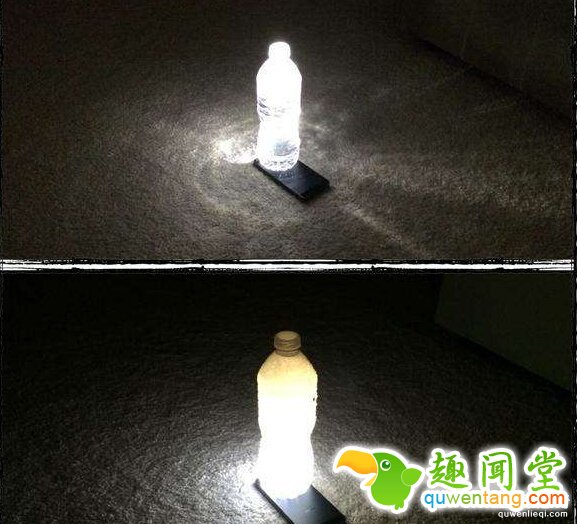 ▼10. 没有小夜灯的时候只要开启手机的手电筒功能,然后在上面放一罐矿泉水就能用相同的效果,如果在水瓶中装牛奶就会是柔和的光线。