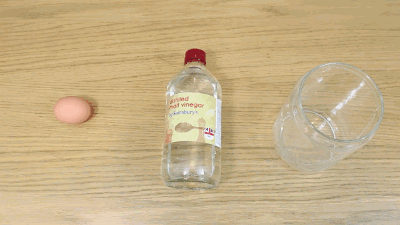 一枚生鸡蛋、一瓶白醋、一个容器