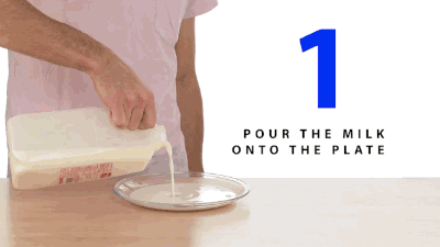 第一步:把牛奶倒进盘子里